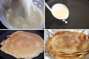 Para elaborar crepes hay que preparar una mezcla con harina, huevos y leche, casi líquida, a diferencia de las tortitas, y se cocinan en una sartén antiadherente (hay algunas especialmente destinadas a preparar crepes). Si son dulces podemos aromatizar la masa, por ejemplo con vainilla y si son saladas, se puede añadir a la mezcla especias o hierbas.